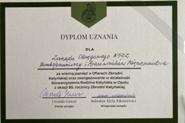 Z ogromną dumą i wzruszeniem informujemy, że Zarząd Okręgowy NSZZ Funkcjonariuszy i Pracowników Więziennictwa w Opolu, na ręce Przewodniczącej Zarządu kol. Danuty Malkusz, otrzymał Dyplom Uznania za wierną pamięć o Ofiarach Zbrodni Katyńskiej […]